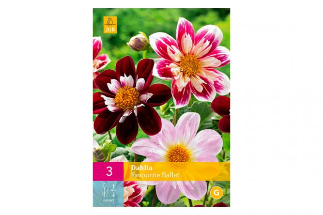 Les Dahlias Favorite Ballet vous offrent toute la palette des couleurs pourpres. Les fleurs sont magnifiques avec leurs belles pétales agrémentées de nuances de blanc. D'une taille de 90cm, ce Dahlia fleurit de juillet à octobre.